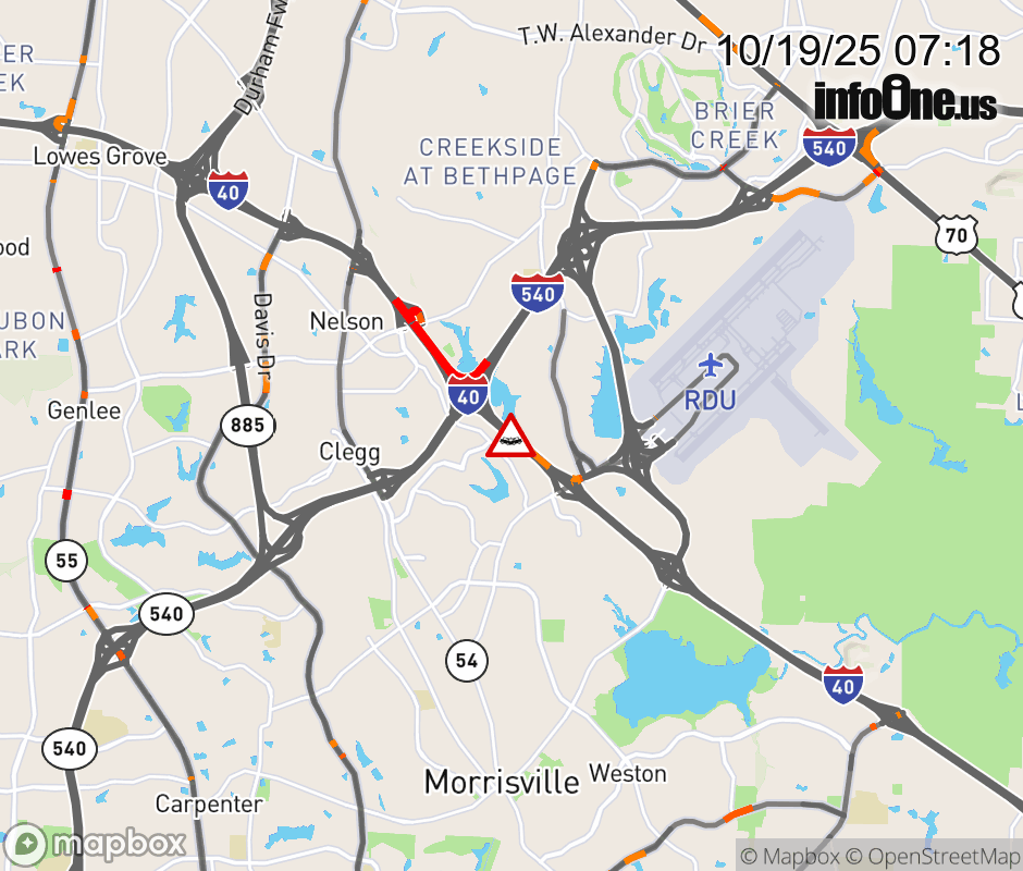The right shoulder is closed before Exit 283B (I-540 East). Updated: Sun 10/19/25 7:18 AM EDT ![]() Updated: Sun 10/19/25 7:18 AM EDT |