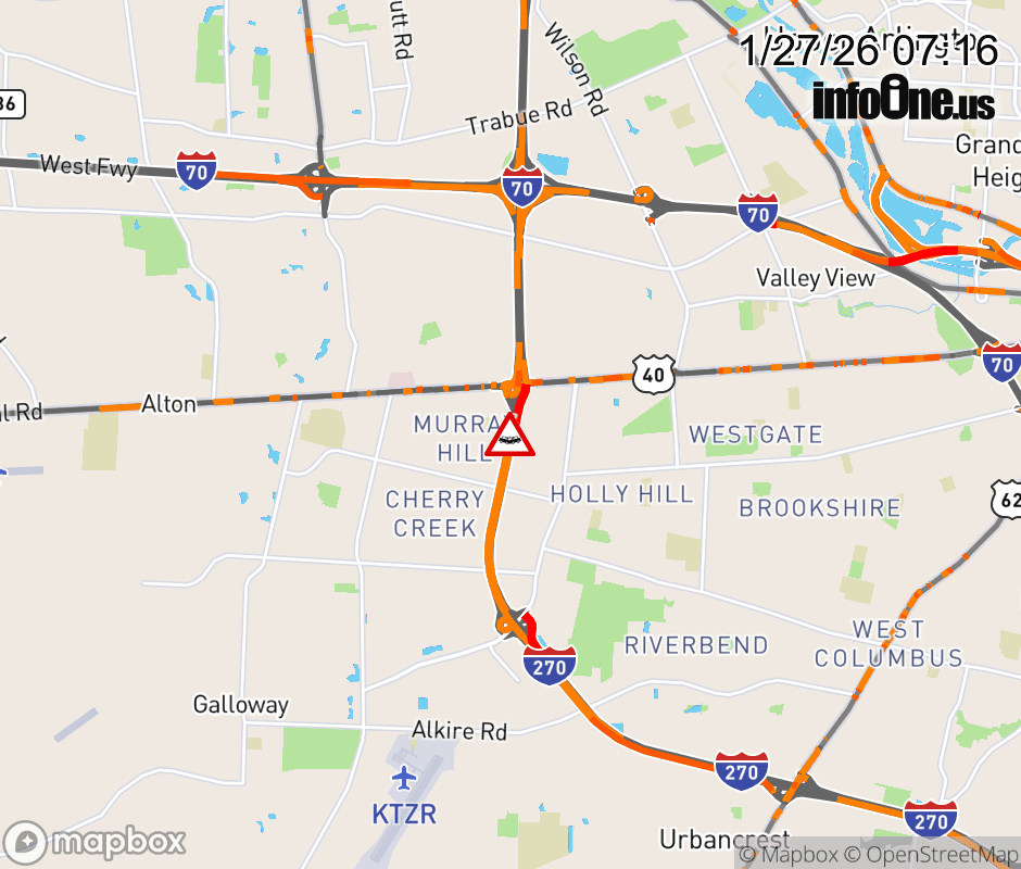 The left lane is blocked on I-270 South beyond US-40/W Broad St East, due to a crash. ![]() |