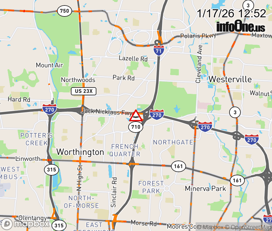 All lanes are blocked on Ramp I-270 East to I-71 North (Northside), due to a crash. ![]() |