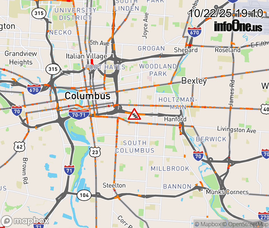 The right lane is blocked on I-70 East beyond E Fulton St, due to repairs/maintenance. ![]() |
