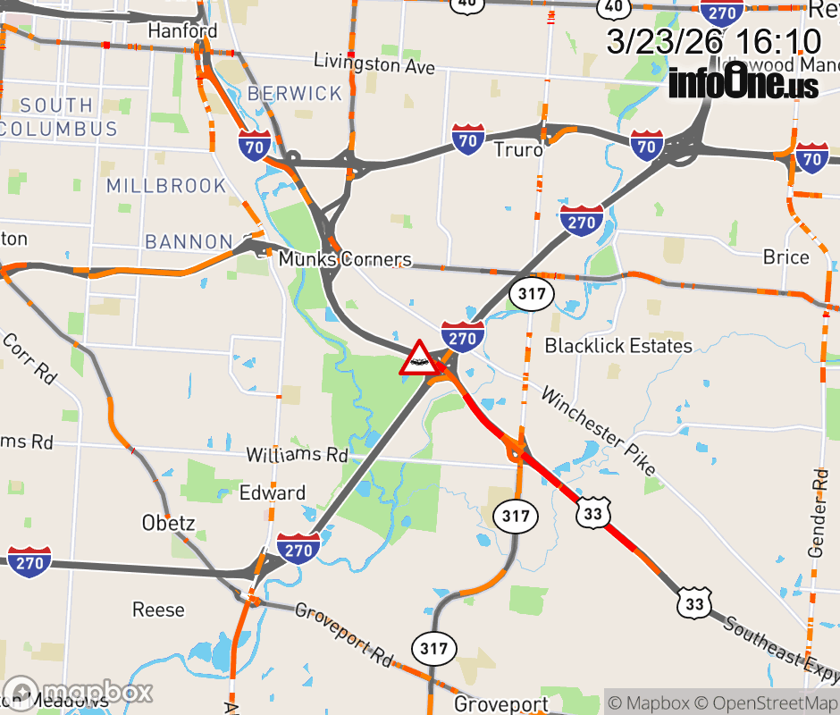 The left shoulder is blocked on US-33 East at I-270 South, due to a crash. ![]() |