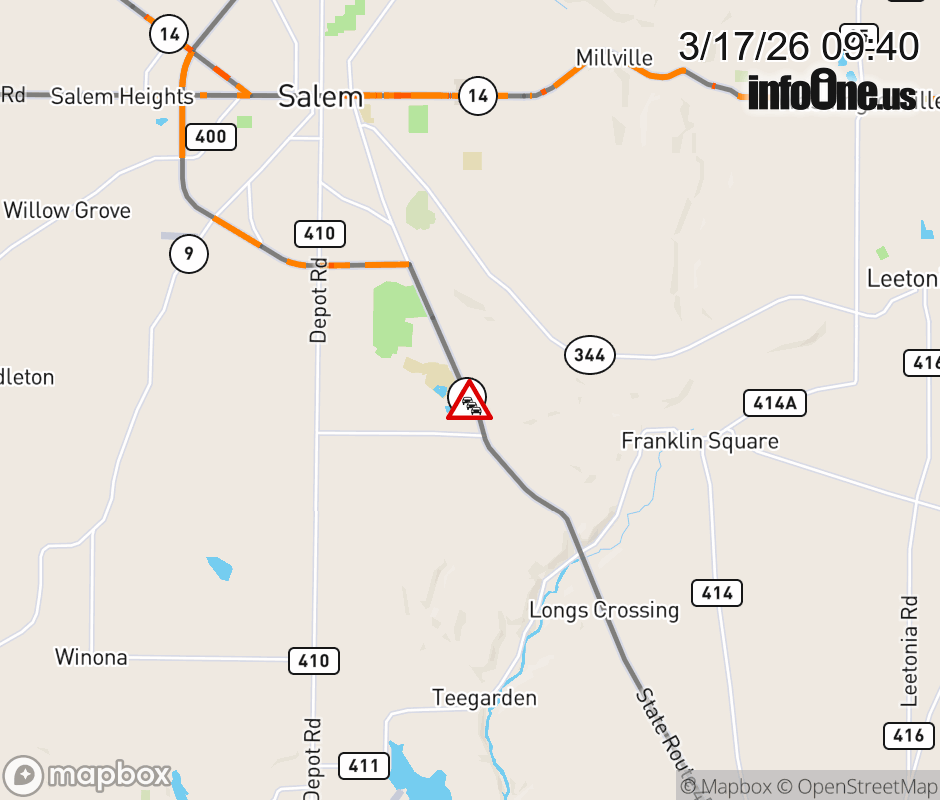 SR-45 CLOSED in BOTH DIRECTIONS 0.3 miles beyond Salem Grange Rd (MM: 22.5), due to utility emergency other incident. Use alternate route. SR-45 CLOSED in BOTH DIRECTIONS 0.3 miles beyond Salem Grange Rd (MM: 22.5), due to utility emergency other incident. Use alternate route. ![]() |