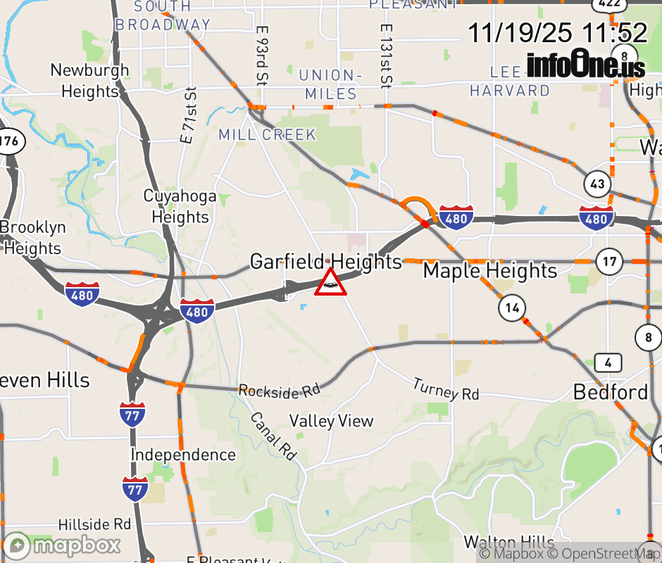 The right shoulder is blocked on I-480 East beyond Transportation Blvd/E 98th St, due to a crash. ![]() |