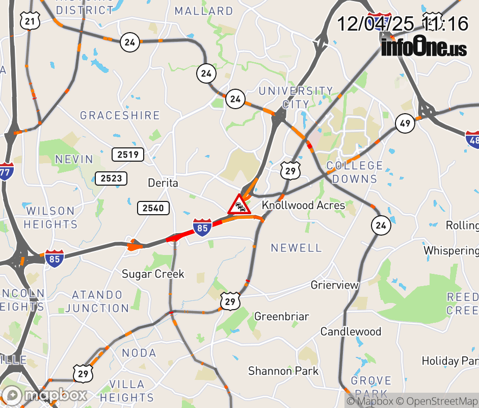 The right shoulder is closed at Exit 43 (University City Blvd.). Updated: Thu 12/4/25 11:16 AM EST ![]() Updated: Thu 12/4/25 11:16 AM EST |