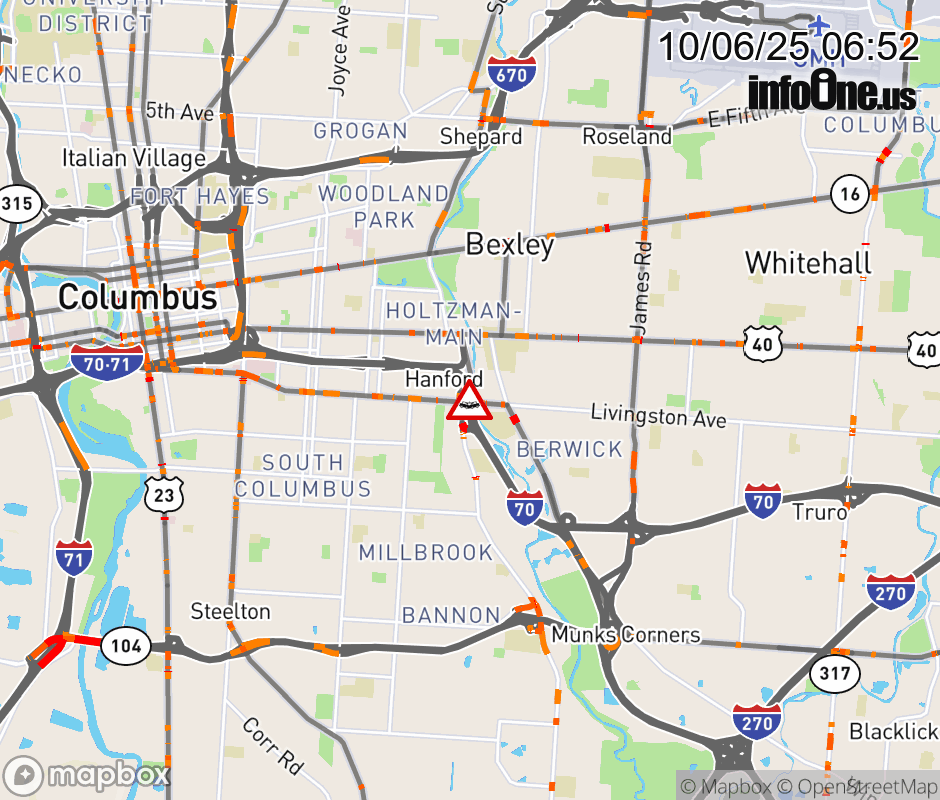 The right lane is blocked on I-70 West beyond US-33/Livingston Ave, due to a crash. Updated: Mon 10/6/25 6:52 AM EDT ![]() |