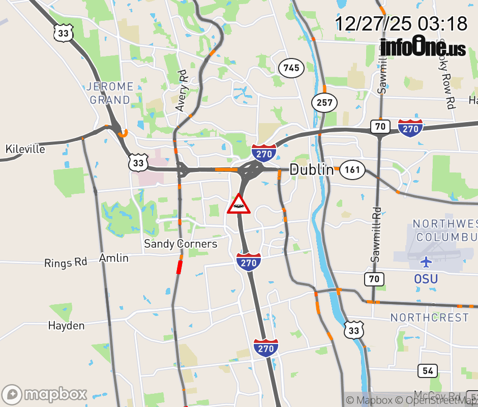 The right lane is blocked on I-270 South at US-33/SR-161, due to a crash. ![]() |