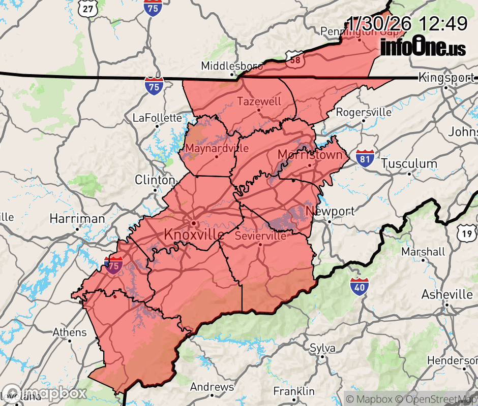 Canceled 1/31/26 2:03 AM Winter Storm Warning issued January 30 at 12:48PM EST until February 1 at 1:00AM EST by NWS Morristown TN * WHAT... Heavy snow expected. Total snow accumulations between 3 to 9 inches. Winds gusting as high as 35 mph. * WHERE... 3 to 6 inches of snow are expected between Lee County VA and south toward the I-40 corridor in TN. 4 to 7 inches along the I-40 corridor and south toward the foothills of the east TN mountains. Locally higher amounts up to 9 inches across the foothills of the east TN mountains. * WHEN... Until 1 AM EST Sunday. * IMPACTS... Travel could become difficult by this evening. Hazardous travel conditions are expected overnight into Saturday. ![]() |