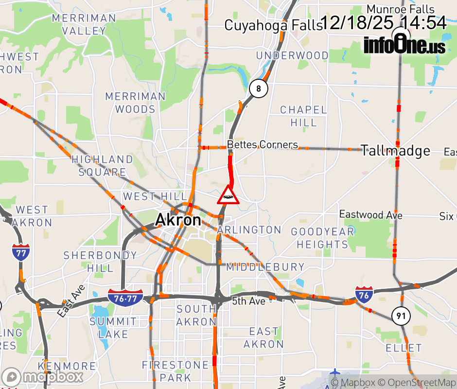 The right lane is blocked on SR-8 South/SR-59 West beyond SR-261/Tallmadge Ave, due to a crash. ![]() |
