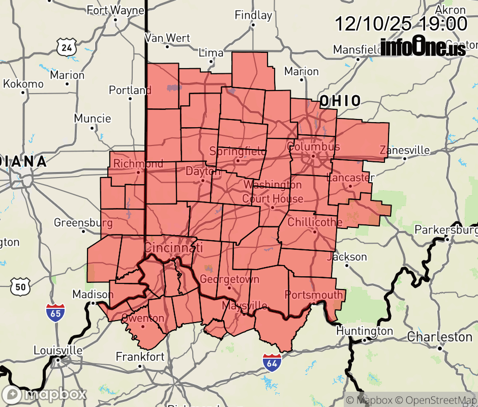 Canceled 12/11/25 3:00 AM Special Weather Statement issued December 10 at 6:57PM EST by NWS Wilmington OH Periods of light snow along with scattered snow showers will continue through the overnight and into Thursday morning. Accumulations are expected to be light, however, with dropping temperatures, slick spots will be possible for the Thursday morning commute. Some snow showers may produce a quick few tenths to a half inch of accumulation, which would increase the potential for slick spots in localized areas. If traveling, use caution, as road conditions could quickly change across short distances and on elevated surfaces like bridges and overpasses. ![]() |