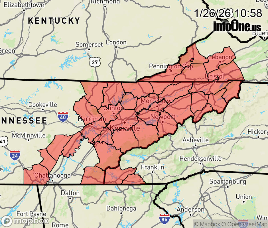 Canceled 1/26/26 2:00 PM Special Weather Statement issued January 26 at 10:57AM EST by NWS Morristown TN We will see light snow showers and flurries around today, and with the very cold conditions any snow that falls will tend to stick around. Light accumulations of a dusting to a few tenths of an inch will occur in some locations during the day. Be prepared for slick conditions in locations that experience a more significant snow shower today. Use caution if you will be driving. ![]() |