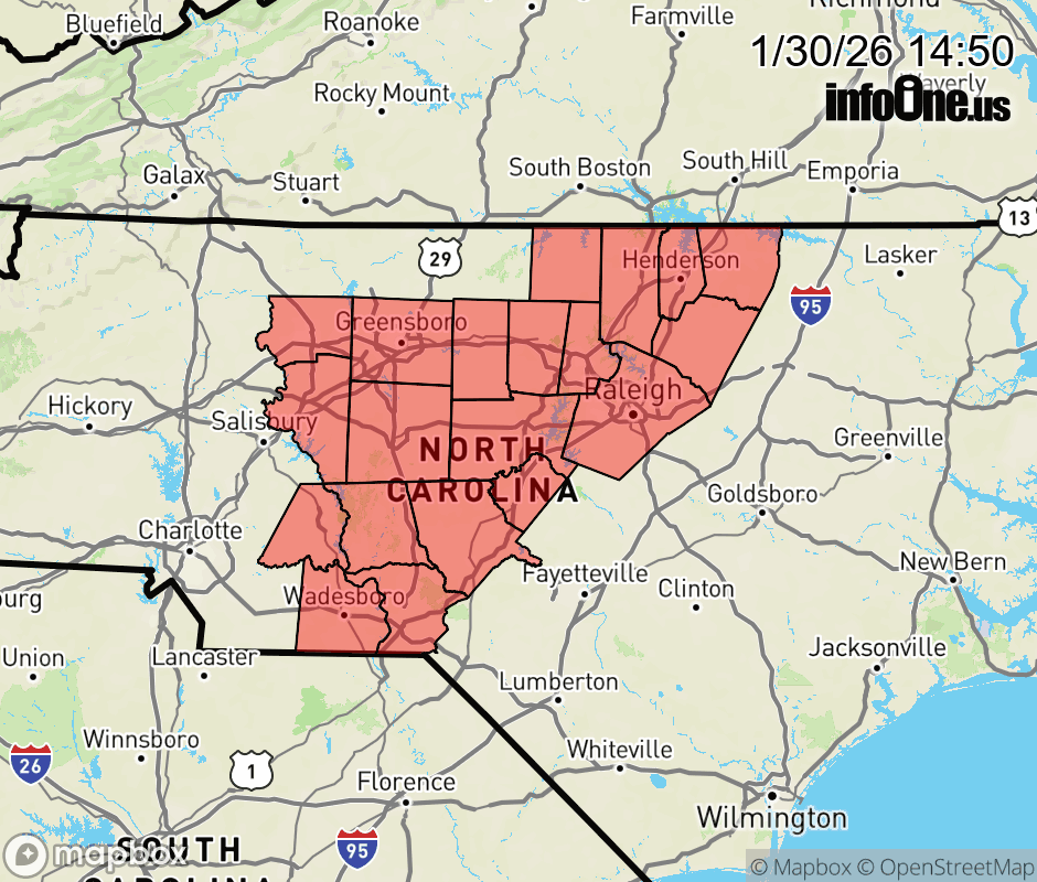 Canceled 1/30/26 8:23 PM Winter Storm Warning issued January 30 at 2:48PM EST until February 1 at 7:00AM EST by NWS Raleigh NC * WHAT... Heavy snow expected. Total snow accumulations between 5 and 8 inches. * WHERE... The Piedmont and western Sandhills. * WHEN... From 4 PM this afternoon until 7 AM EST Sunday. * IMPACTS... Roads, and especially bridges and overpasses, will likely become slick and hazardous. Travel could be very difficult or even impossible at times Saturday into Sunday. ![]() |