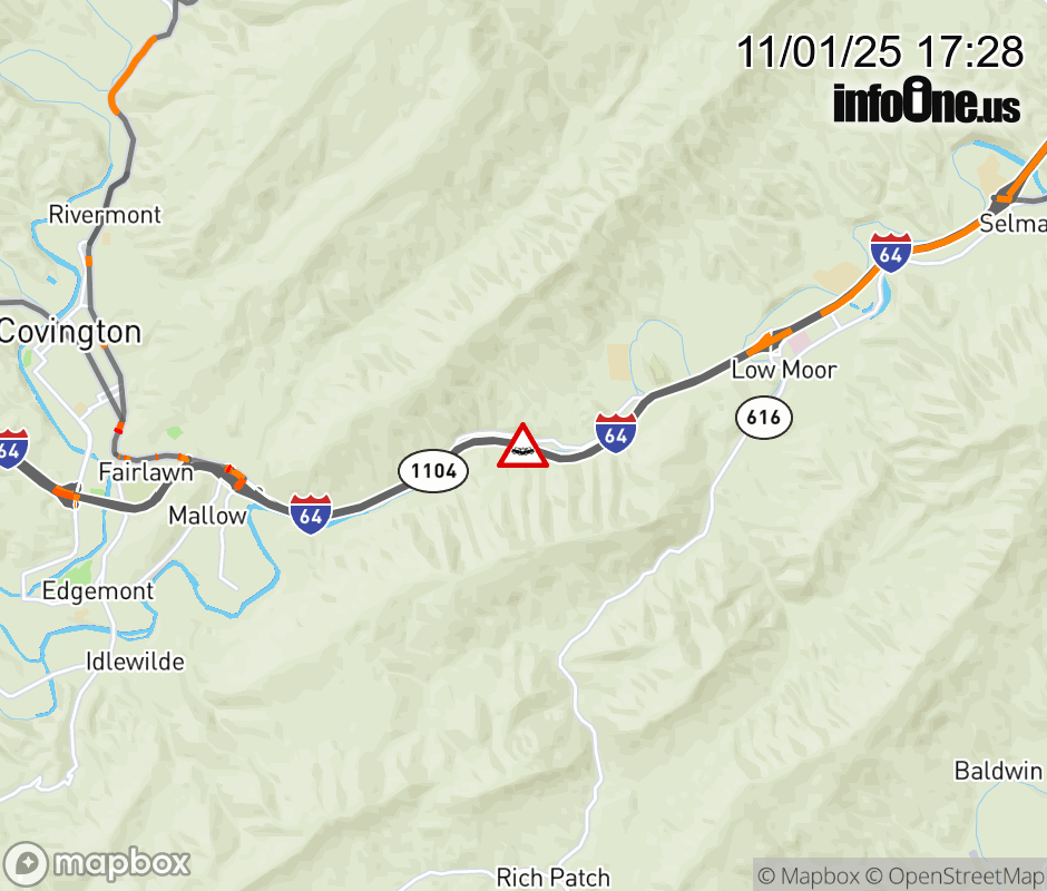 On I-64 West at mile marker 19.2 in the County of Alleghany, motorists can expect delays due to a vehicle crash. Updated: Sat 11/1/25 5:28 PM EDT ![]() Updated: Sat 11/1/25 5:28 PM EDT |