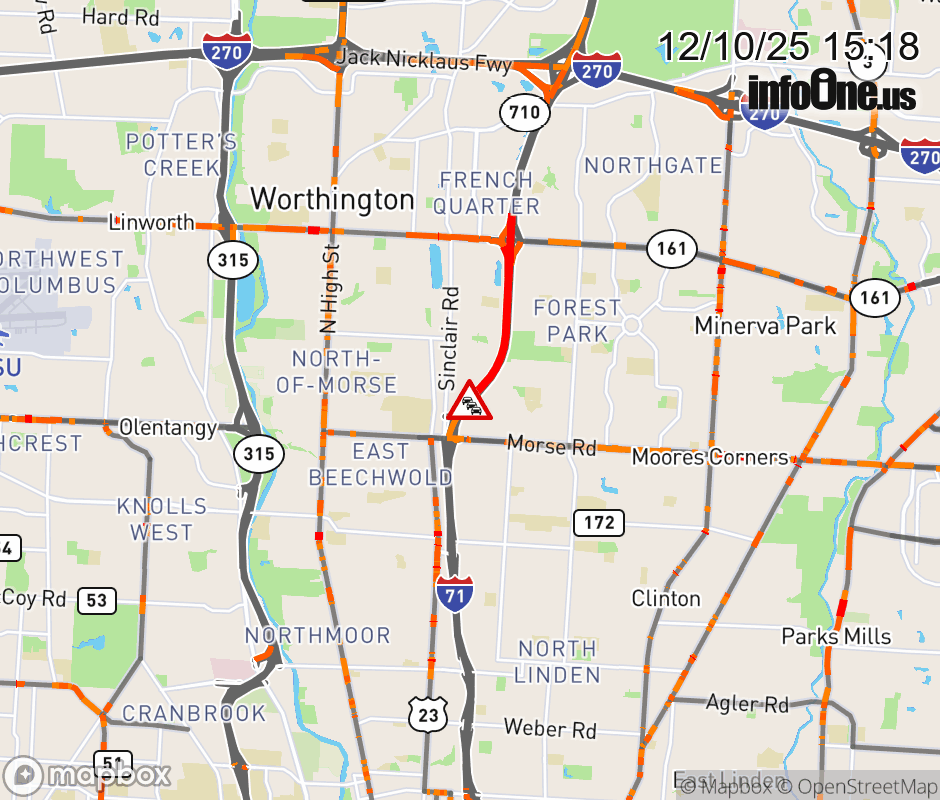 The right shoulder is blocked on I-71 South at Sinclair Rd/Morse Rd, due to debris on roadway. Updated: Wed 12/10/25 3:18 PM EST ![]() Updated: Wed 12/10/25 3:18 PM EST |