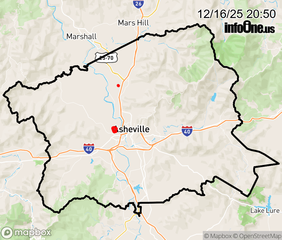 Canceled 12/16/25 9:30 PM Buncombe County has 5 power outages affecting 225 customers. Duke Energy 225 without power Estimated repair: Tue 11:00 PM Updated: Tue 12/16/25 8:50 PM EST ![]() Updated: Tue 12/16/25 8:50 PM EST |