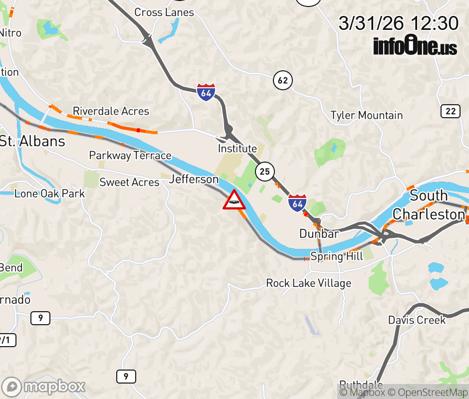 Vehicle Crash on US-60 (Area of 6390 MacCorkle Ave SW) in Jefferson. Updated: Tue 3/31/26 12:30 PM EDT ![]() Updated: Tue 3/31/26 12:30 PM EDT |
