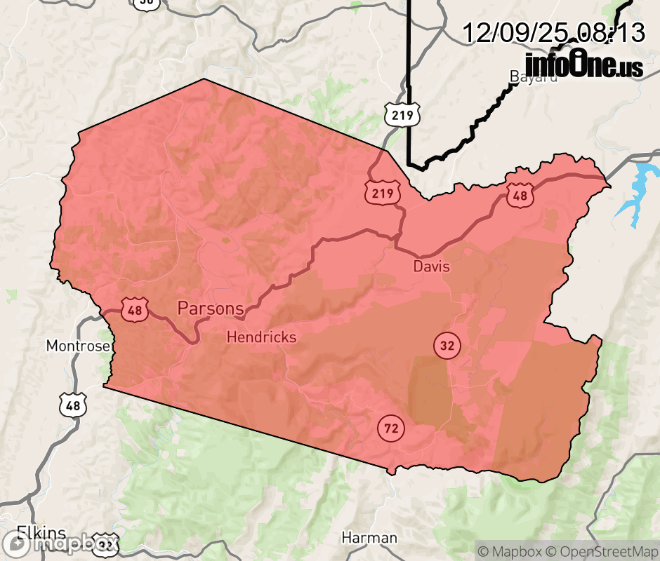 Canceled 12/9/25 12:59 PM Winter Storm Watch issued December 9 at 8:12AM EST until December 11 at 1:00PM EST by NWS Pittsburgh PA * WHAT... Total snow accumulations of up to 6 inches possible. Winds could gust as high as 55 mph. * WHERE... Eastern Tucker County. * WHEN... From Wednesday morning through Thursday afternoon. * IMPACTS... The strong winds and weight of snow on tree limbs may down power lines and could cause sporadic power outages. Whiteout conditions are possible and may make travel treacherous and potentially life-threatening. Plan on slippery road conditions. The hazardous conditions could impact the Wednesday morning and evening commutes. ![]() |