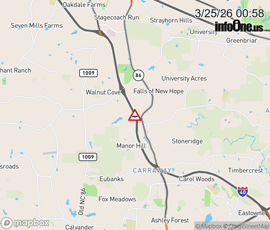 The right lane is closed past Exit 163 (New Hope Church Rd). Updated: Wed 3/25/26 12:58 AM EDT ![]() Updated: Wed 3/25/26 12:58 AM EDT |