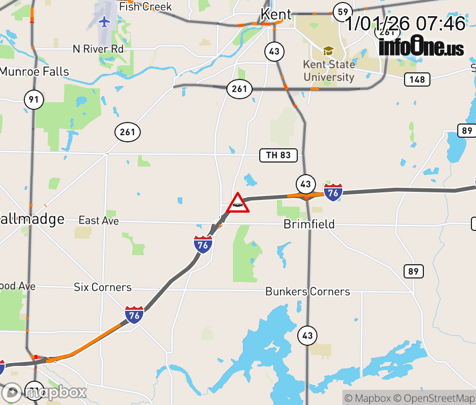 Expect lane closures on I-76 West beyond SR-43, due to a crash. ![]() |