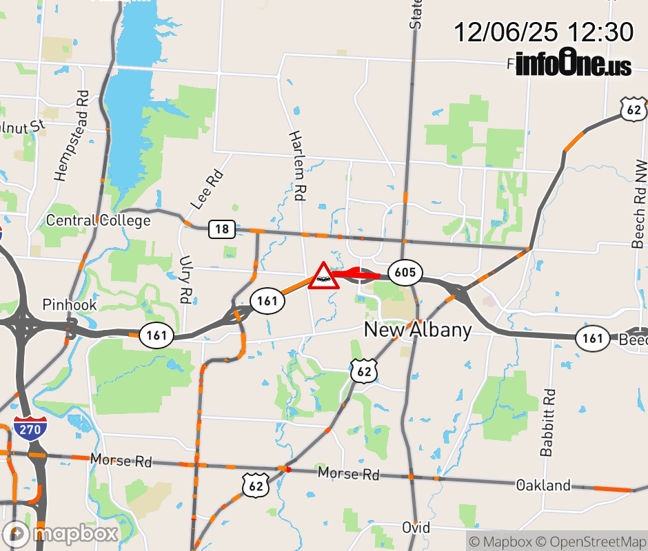 The left shoulder is blocked on SR-161 West beyond New Albany Rd, due to a crash. Updated: Sat 12/6/25 12:30 PM EST ![]() Updated: Sat 12/6/25 12:30 PM EST |