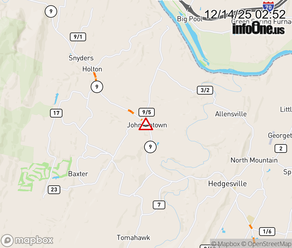 Vehicle Crash on WV 9 (Hedgesville Rd & Baxter Rd). ![]() |