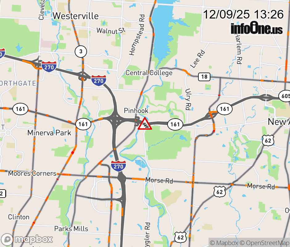 Expect lane closures on SR-161 West at Sunbury Rd, due to debris on roadway. ![]() |