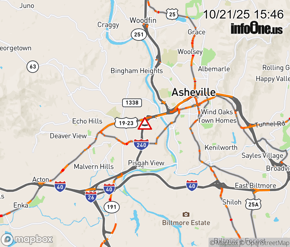 The left shoulder is closed at Exit 3A, US 19/23/74 ALT (Patton Avenue). ![]() |