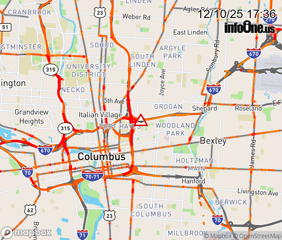 The left shoulder is blocked on I-670 East beyond I-71 South, due to a crash. ![]() |