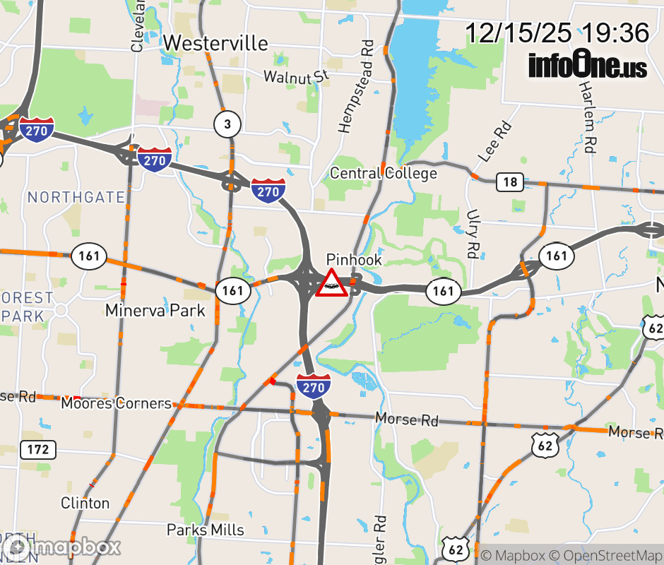 Expect lane closures on Ramp I-270 South to SR-161 East, due to a crash. Updated: Mon 12/15/25 7:36 PM EST ![]() Updated: Mon 12/15/25 7:36 PM EST |