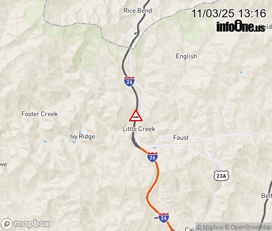 The right lane is closed past Exit 3, US 23 Alt (Bear Branch Road). Updated: Mon 11/3/25 1:16 PM EST ![]() Updated: Mon 11/3/25 1:16 PM EST |