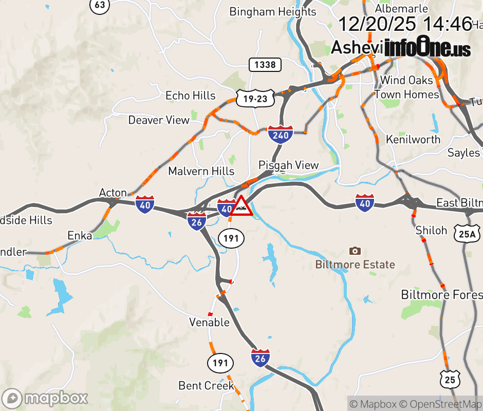 The ramp lane is closed at Exit 47, NC 191 (Brevard Rd). ![]() |