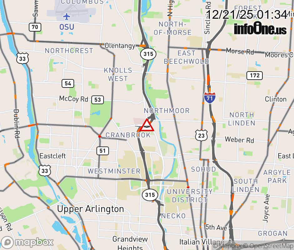 The right lane is blocked on SR-315 South beyond North Broadway, due to a crash. Updated: Sun 12/21/25 1:34 AM EST ![]() Updated: Sun 12/21/25 1:34 AM EST |