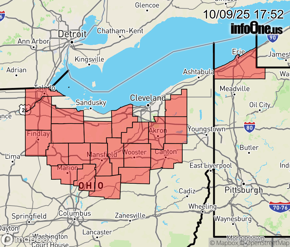 Canceled 10/10/25 1:49 AM Frost Advisory issued October 9 at 5:48PM EDT until October 10 at 9:00AM EDT by NWS Cleveland OH * WHAT... Temperatures as low as 32 will result in frost formation. * WHERE... Portions of north central, northeast, and northwest Ohio and northwest Pennsylvania. * WHEN... From 1 AM to 9 AM EDT Friday. * IMPACTS... Frost could harm sensitive outdoor vegetation. Sensitive outdoor plants may be killed if left uncovered. ![]() |