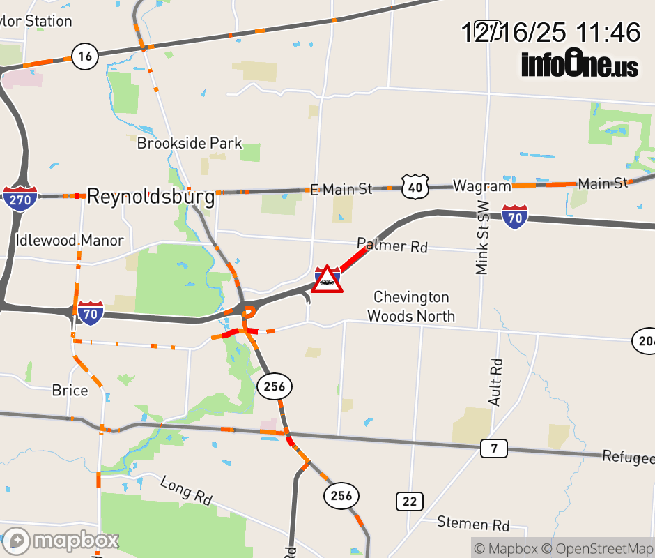 The right lane is blocked on I-70 West beyond SR-310/Etna/Pataskala, due to a crash. ![]() |