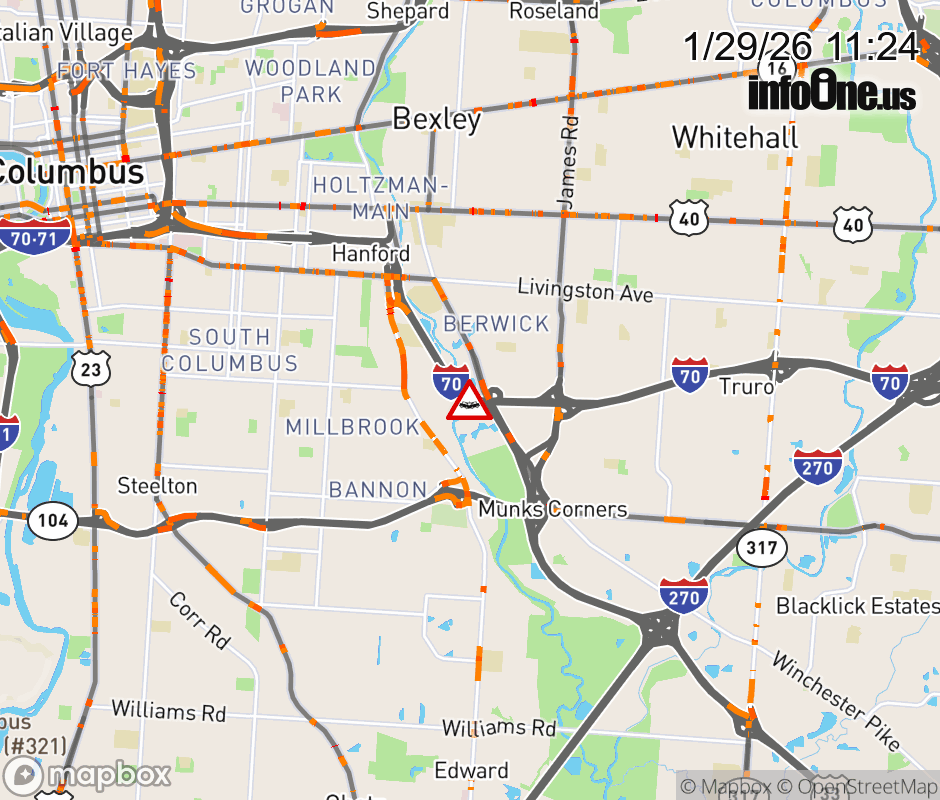 The left lane is blocked on I-70 East at US-33, due to a crash. ![]() |