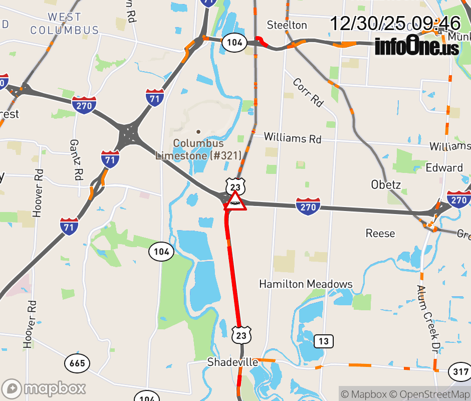 Ramp I-270 West to US-23 South (Southside) CLOSED because of a crash. ![]() |