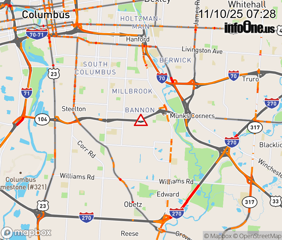 Expect lane closures on SR-104 East beyond Lockbourne Rd, due to a crash. ![]() |