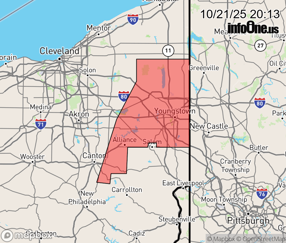 Canceled 10/21/25 9:15 PM Special Weather Statement issued October 21 at 8:12PM EDT by NWS Cleveland OH At 809 PM EDT, Doppler radar was tracking strong thunderstorms along a line extending from near North Bloomfield to near Garrettsville to near Ravenna to near Strasburg. Movement was east at 25 mph. HAZARD...Wind gusts up to 40 mph. SOURCE...Radar indicated. IMPACT...Gusty winds could knock down tree limbs and blow around unsecured objects. Locations impacted include... Youngstown, Warren, Salem, Columbiana, Boardman, Alliance, Niles, Louisville, Campbell, Hubbard, Canfield, Cortland, Newton Falls, Sebring, Minerva, Lordstown, Kinsman, North Bloomfield, Waynesburg, and East Sparta. ![]() |