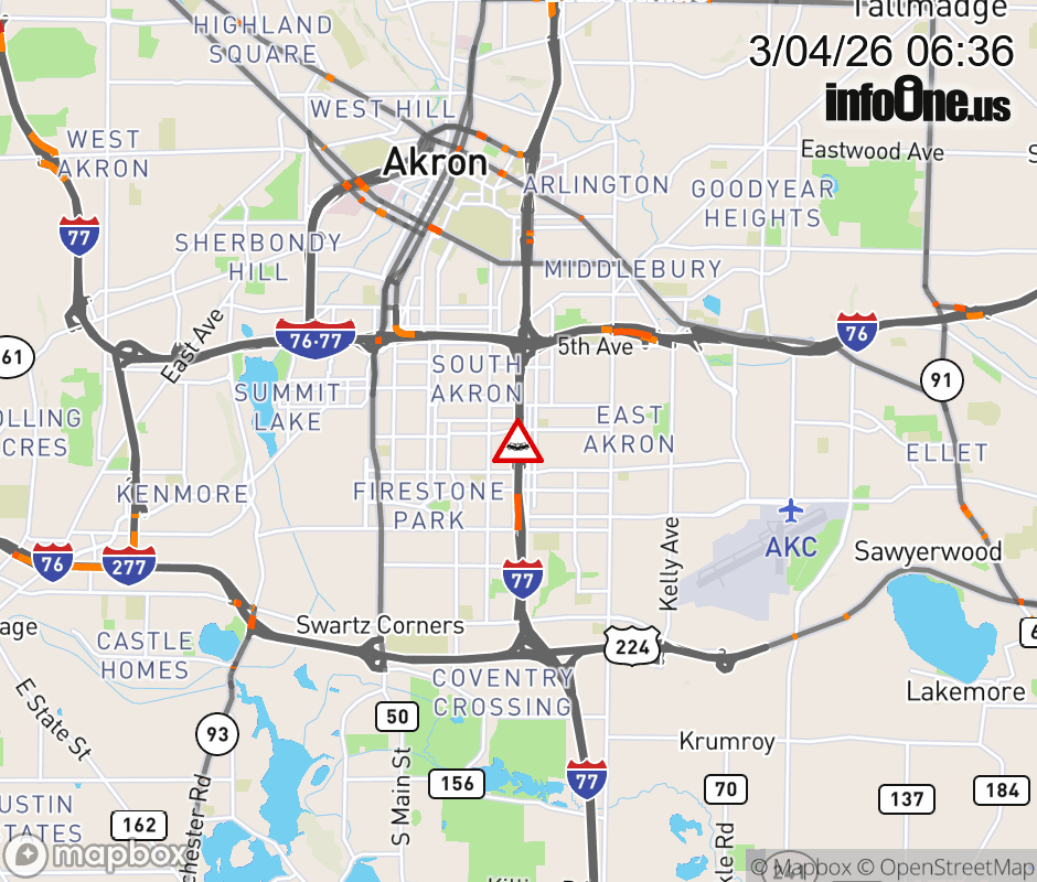 The left lane is blocked on I-77 South at Archwood Ave/Firestone Blvd, due to a crash. ![]() |