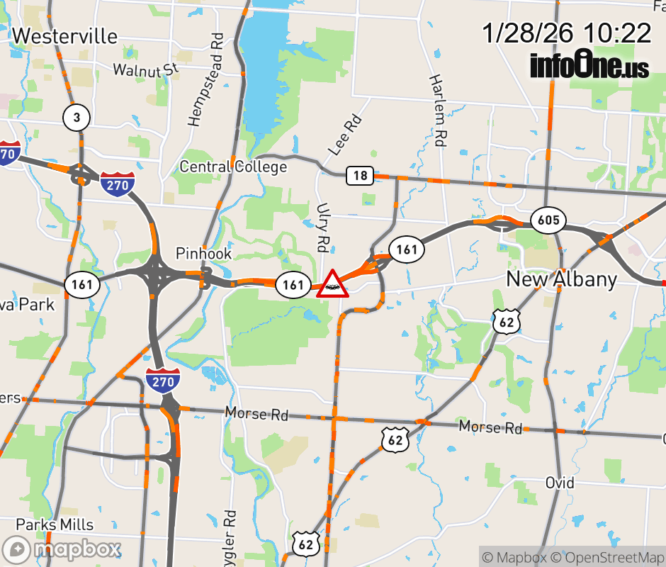 Expect lane closures on SR-161 West beyond Hamilton Rd, due to a crash. ![]() |
