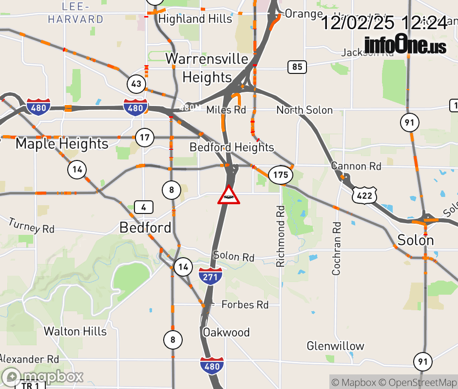 The left lane is blocked on I-480 West at I-271/I-480 North, due to a crash. ![]() |