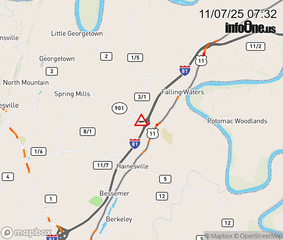 Vehicle Crash on WV-901 (5300 Hammonds Mill Road). The eastbound road is closed. Updated: Fri 11/7/25 7:32 AM EST ![]() Updated: Fri 11/7/25 7:32 AM EST |