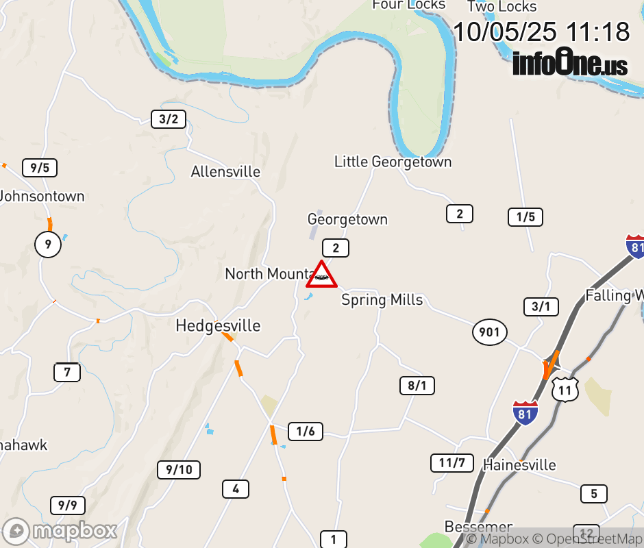 In Berkeley County there is a Vehicle Crash on WV-901 at Mile Marker 1.76. 1900 BLK of Hammonds Mill Rd in Hedgesville. ![]() |