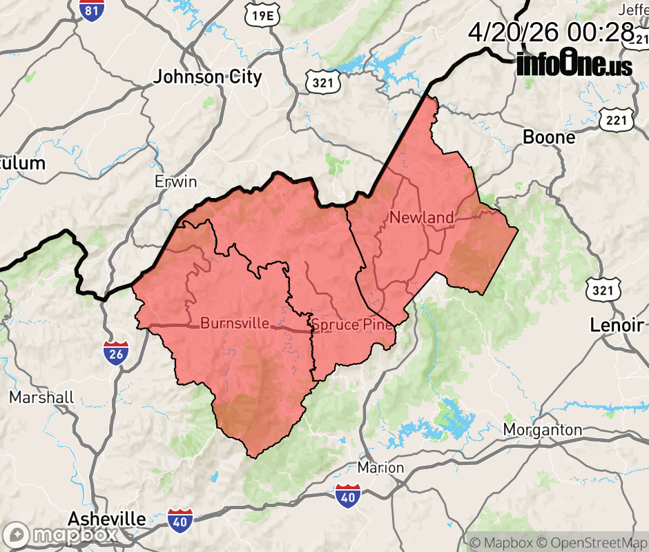 Canceled 4/20/26 1:38 AM Freeze Warning issued April 20 at 12:27AM EDT until April 21 at 9:00AM EDT by NWS Greenville-Spartanburg SC * WHAT... Sub-freezing temperatures as low as 28 expected. * WHERE... Avery, Mitchell, and Yancey Counties. * WHEN... From midnight tonight to 9 AM EDT Tuesday. * IMPACTS... Frost and freeze conditions could kill crops, other sensitive vegetation and possibly damage unprotected outdoor plumbing. ![]() |
