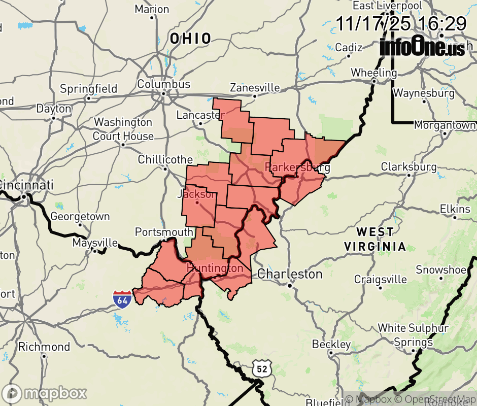 Canceled 11/18/25 2:04 AM Winter Weather Advisory issued November 17 at 4:28PM EST until November 18 at 10:00AM EST by NWS Charleston WV * WHAT... Freezing rain expected. Total ice accumulations around a light glaze. * WHERE... Portions of northeast Kentucky, southeast Ohio, and northern and western West Virginia. * WHEN... From 6 AM to 10 AM EST Tuesday. * IMPACTS... Very slippery sidewalks, roads and bridges are possible. The hazardous conditions could impact the Tuesday morning commute. * ADDITIONAL DETAILS... A brief period of freezing rain is expected prior to switching over to all rain. Areas typically subject to cold air drainage are expected to experience the longest duration of freezing rain. ![]() |