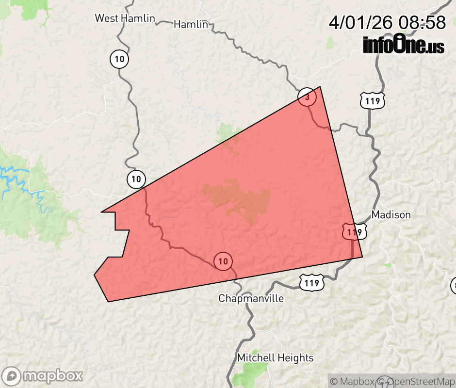 Canceled 4/1/26 9:30 AM Special Weather Statement issued April 1 at 8:56AM EDT by NWS Charleston WV At 856 AM EDT, Doppler radar was tracking a strong thunderstorm over Harts, or 16 miles northwest of Logan, moving east at 25 mph. HAZARD...Wind gusts up to 40 mph and pea size hail. SOURCE...Radar indicated. IMPACT...Gusty winds could knock down tree limbs and blow around unsecured objects. Minor hail damage to vegetation is possible. Locations impacted include... Spurlockville, Gill, Harts, Alkol, Turtle Creek, and Mud. This includes Route 119 between mile markers 47 and 48. ![]() |