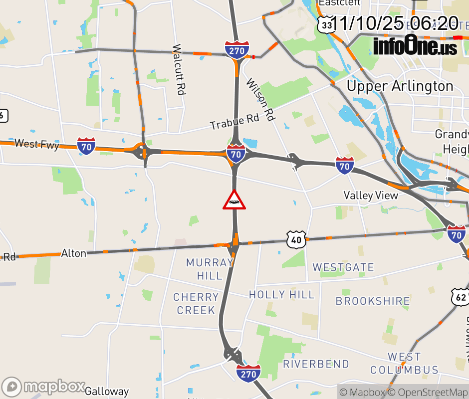 The right shoulder is blocked on I-270 North beyond US-40/W Broad St, due to a crash. ![]() |