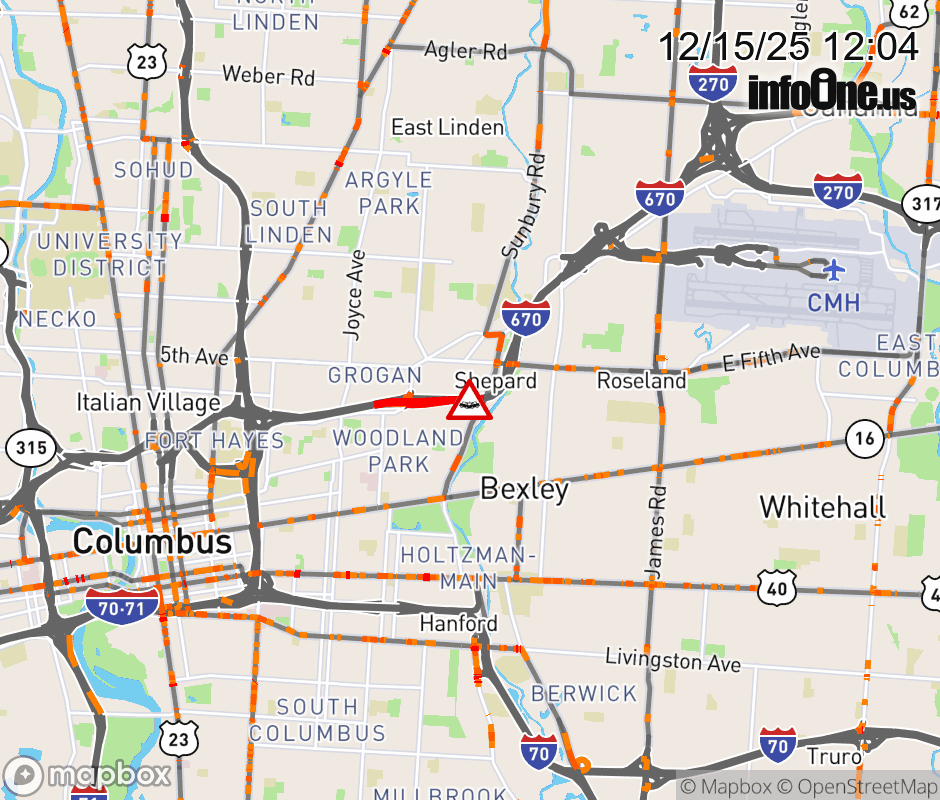 The left lane is blocked on I-670 East beyond Leonard Ave, due to a crash. Updated: Mon 12/15/25 12:04 PM EST ![]() Updated: Mon 12/15/25 12:04 PM EST |