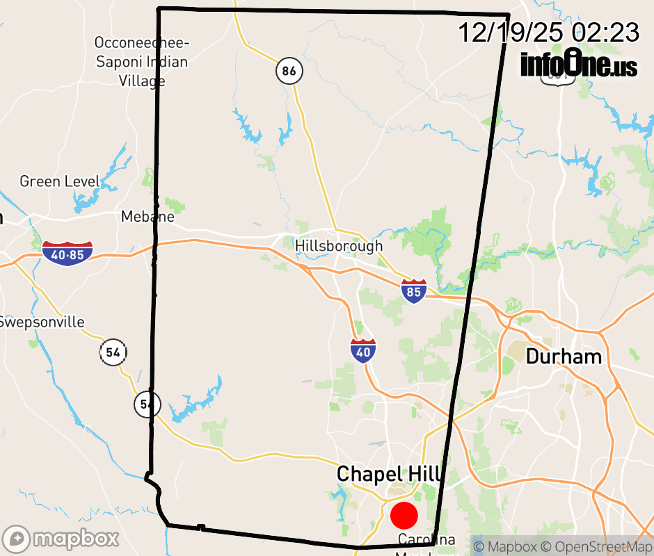 Canceled 12/19/25 2:34 AM Orange County has 1 power outage affecting 159 customers. Duke Energy 159 without power Estimated repair: Fri 4:00 AM Updated: Fri 12/19/25 2:03 AM EST ![]() Updated: Fri 12/19/25 2:23 AM EST |