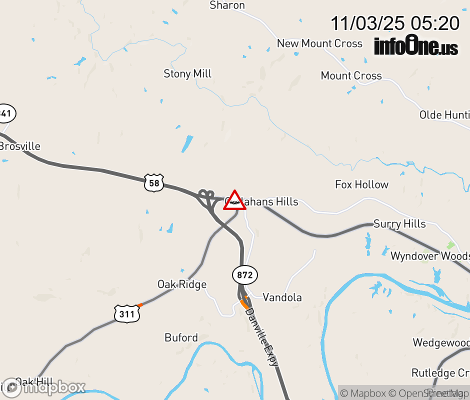 On BUS US-58 East in the County of Pittsylvania, in the vicinity of Berry Hill Rd, motorists can expect delays due to a tractor trailer crash. Lane closures exist. ![]() |