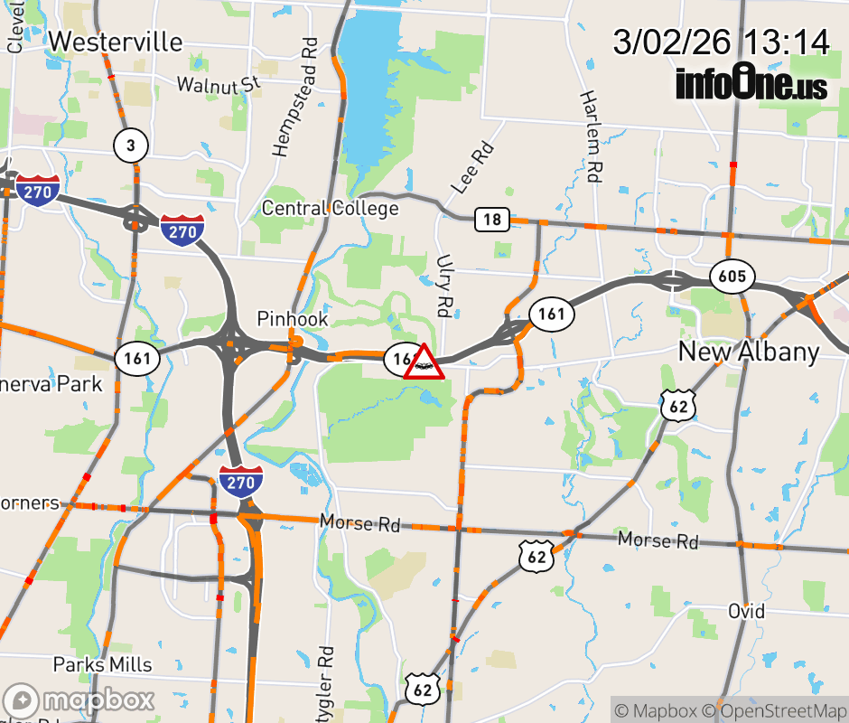The left shoulder is blocked on SR-161 West beyond Hamilton Rd, due to a crash. ![]() |